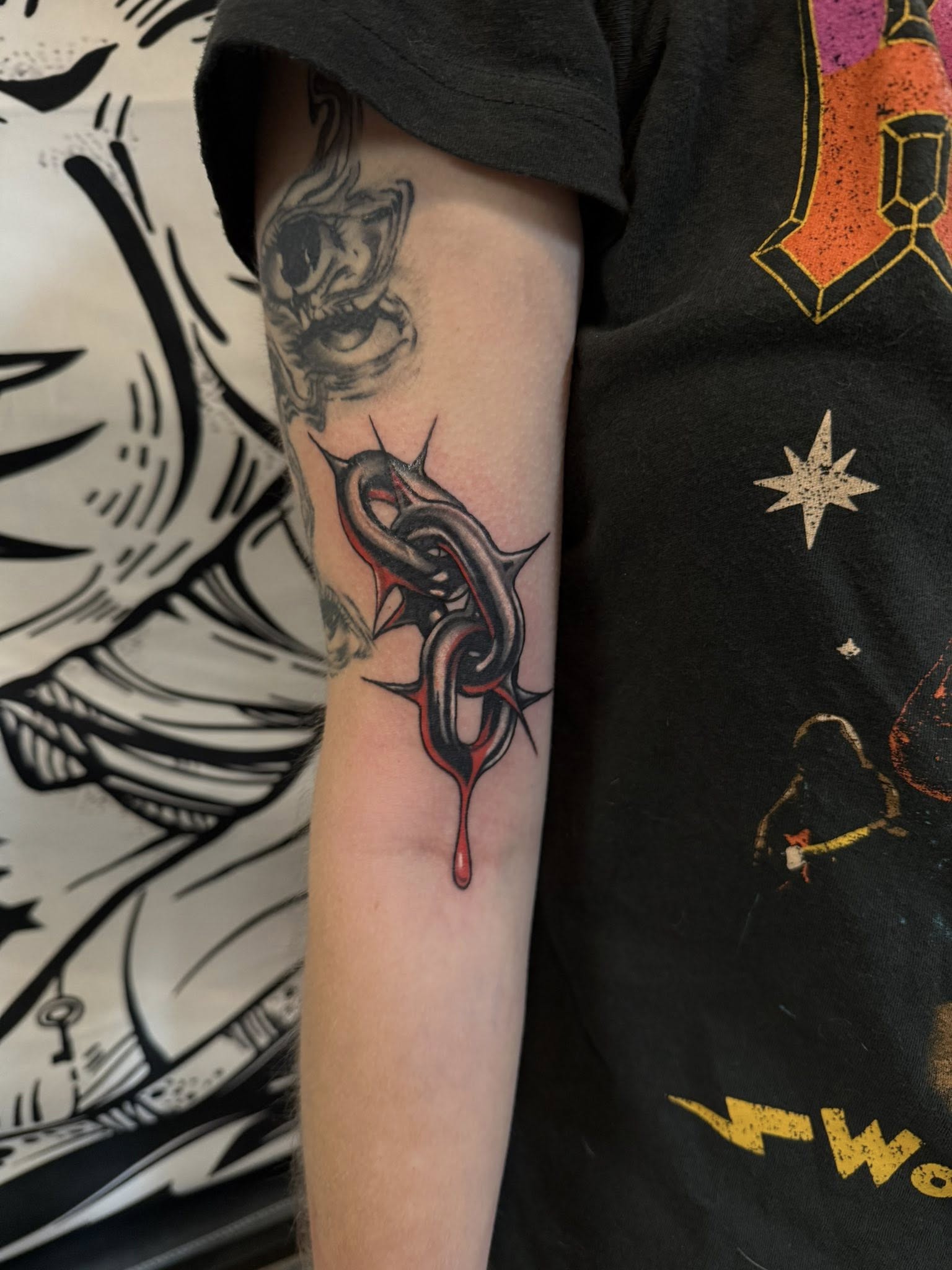 Kaley Thomas brings the color. She leans into bright, bold work that stands out and stays solid over time. Strong lines, clean saturation, and designs that read clearly from across the room.