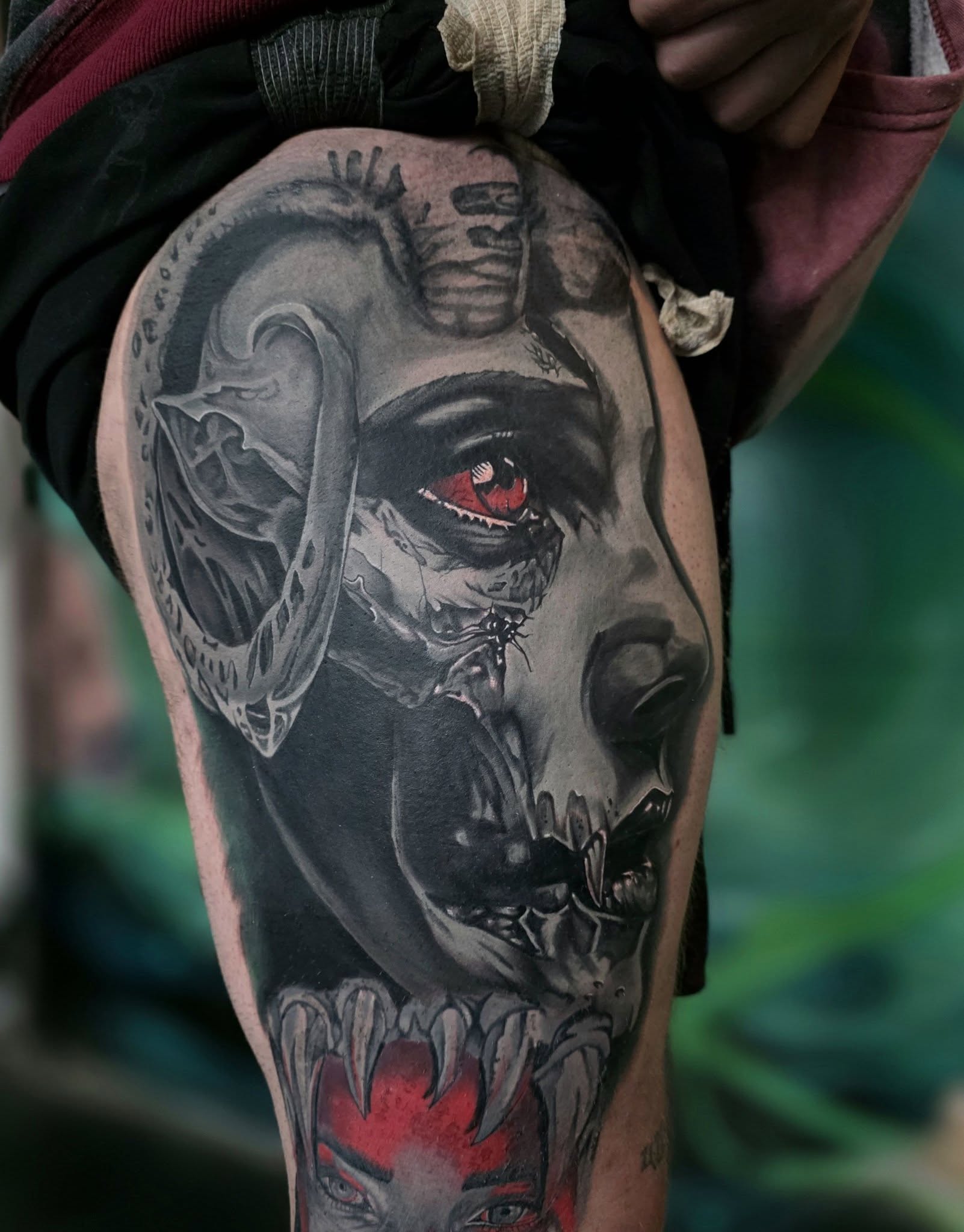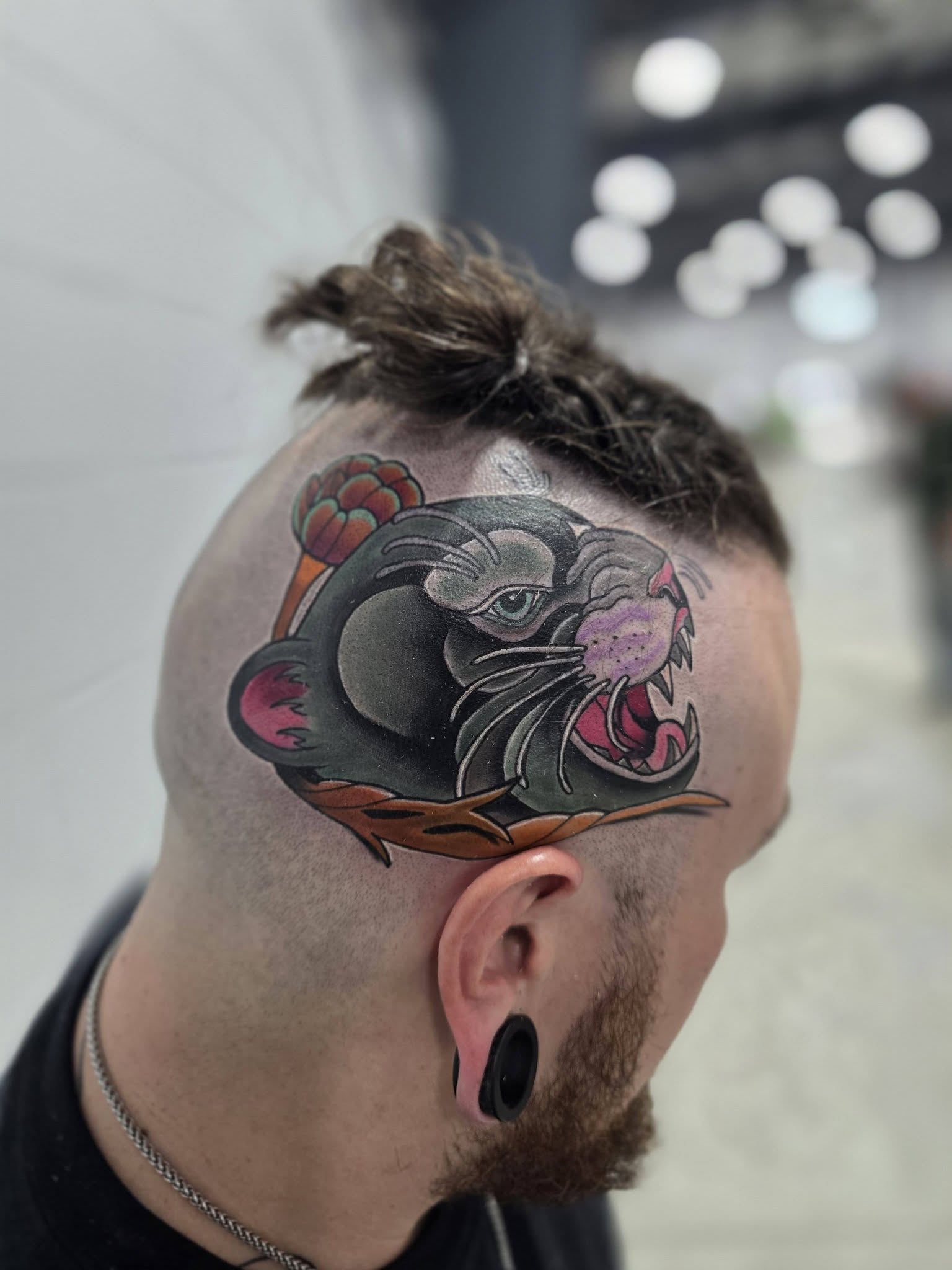 I lean into bold, unique designs with a style that’s my own. I don’t like cookie cutter tattoos, so every piece gets real intention and energy behind it. Tattooing isn’t just a job for me, it’s something I genuinely care about, and I try to show that in every single tattoo I do.